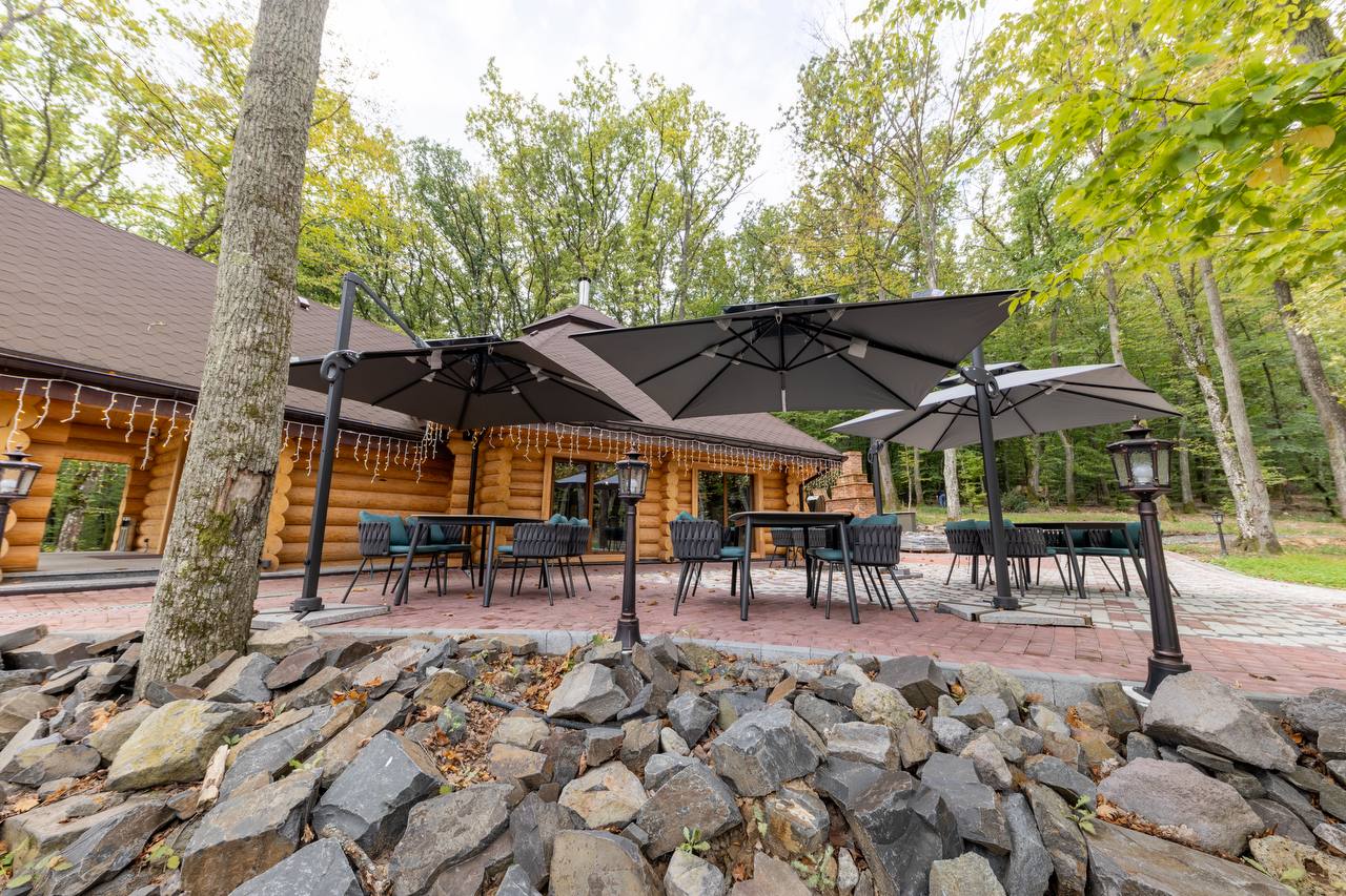 Колиба вміщує до 50 гостей — ідеально для камерних подій та свят.